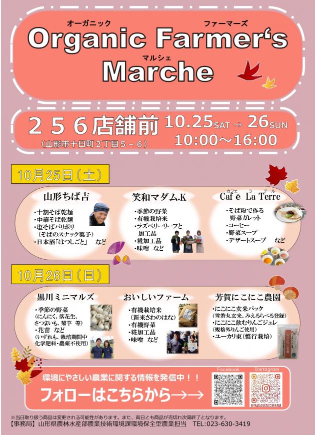 山形県の環境に優しい農業をたくさんの方に知っていただけるように、「オーガニックファーマーズマルシェ」を開催します。